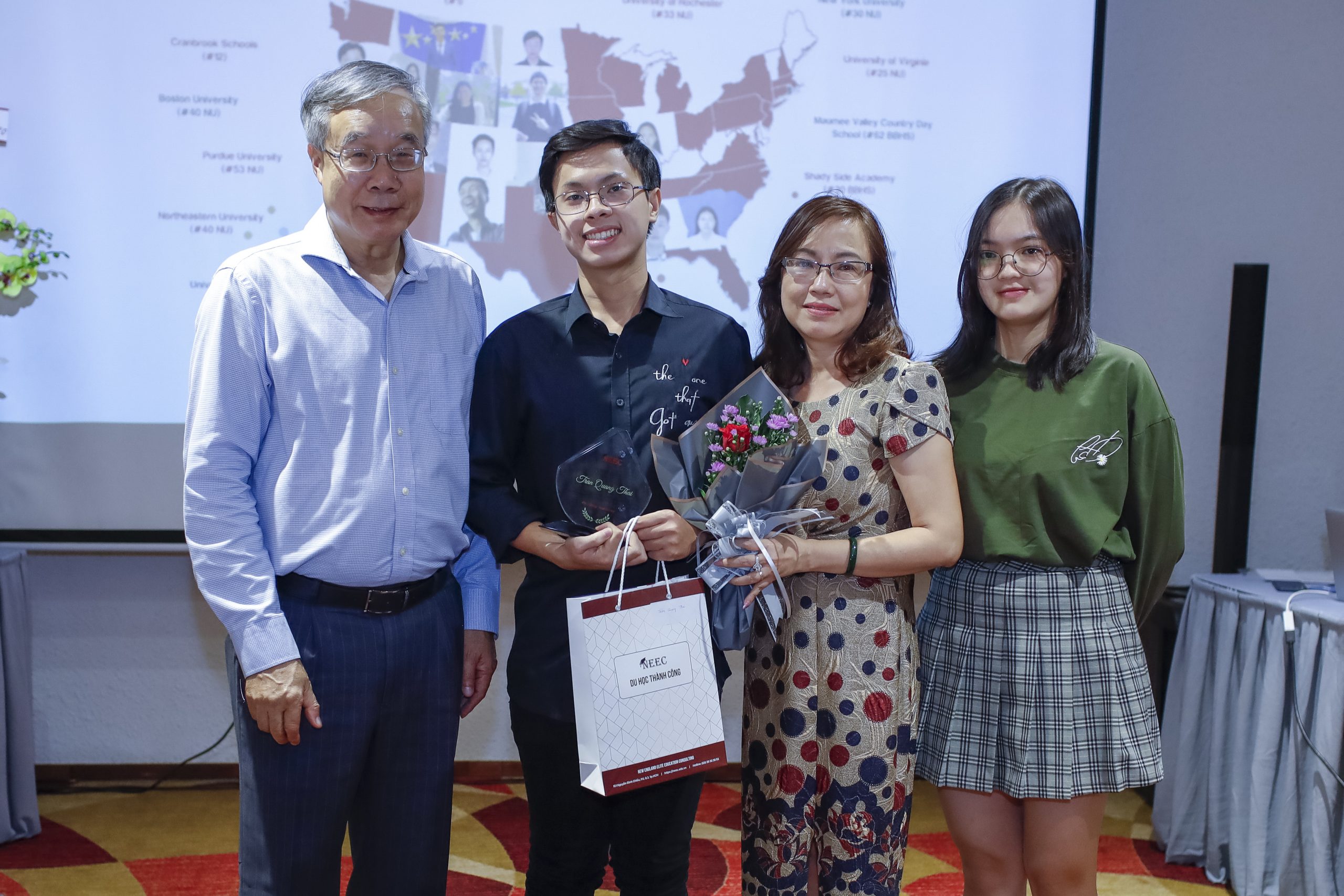 Có thể nói, du học là bước ngoặt lớn đối với tương lai và cuộc đời của các em học sinh, và cũng là sự nỗ lực lớn lao của gia đình. Với những thành tích đáng tự hào trong những năm qua, chúng tôi vô cùng trân trọng niềm tin mà quý phụ huynh và các em học sinh đã dành cho đội ngũ tập thể NEEC. Qua buổi gỡ này, NEEC hy vọng các em sẽ nỗ lực và cố gắng hơn nữa để tiếp tục gặt hái thành công tại những ngôi trường tốt nhất nước Mỹ.